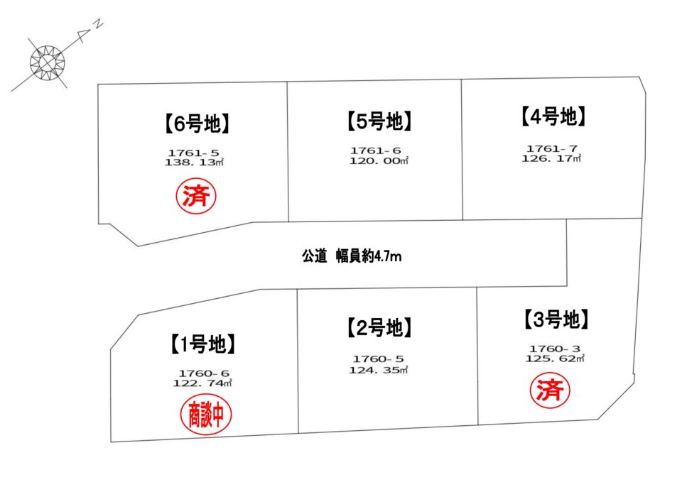 (5区画、土地面積 5号地120㎡(約36.3坪) 4号地126.20㎡(約38.17坪) 2号地124.35㎡(約37.61坪) 1号地122.74㎡(約37.12坪) 価格1980~2280万円(税込)※建築条件付き)閑静な住宅地。駅近、徒歩1分。生活至便地。お子様の通学・老後の車のない生活でもご安心して住んで頂けます。